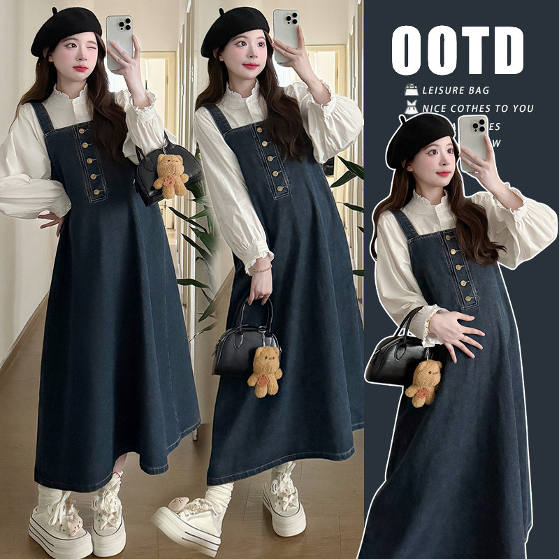 孕妇连衣裙两件套装时尚宽松显瘦中长款洋气背带裙2025新款春秋冬