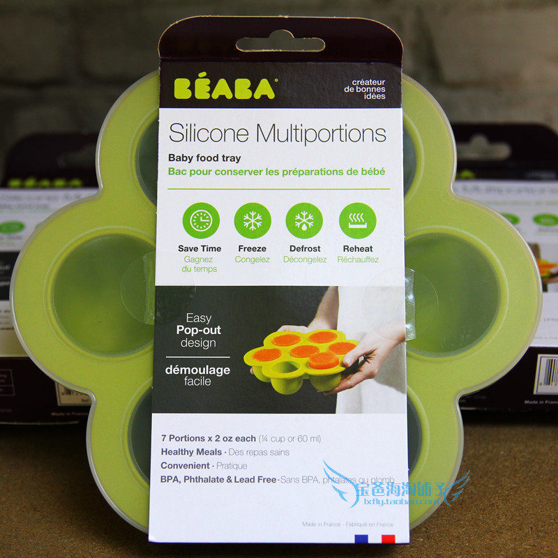清仓法国BEABA婴儿硅胶辅食盒花朵盘冷冻冷藏盒分格盒辅食机配件