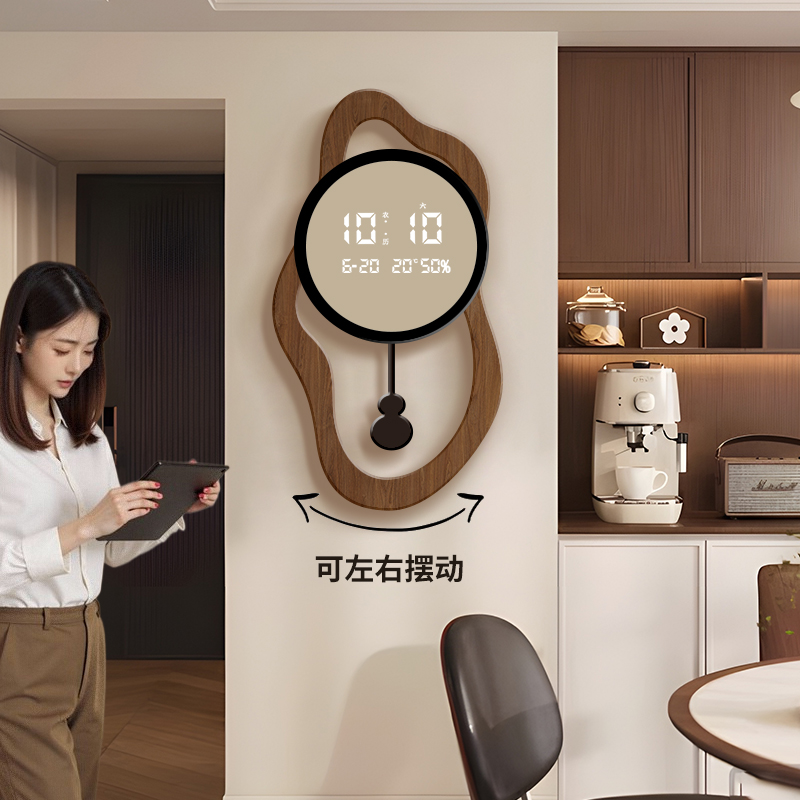 中古风餐厅艺术钟表挂钟客厅创意时钟2025新款万年历电子钟表挂墙