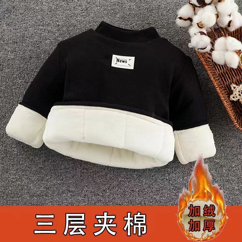 【无骨缝制】宝宝打底衫冬半高领儿童冬季上衣加绒加厚男宝冬装潮