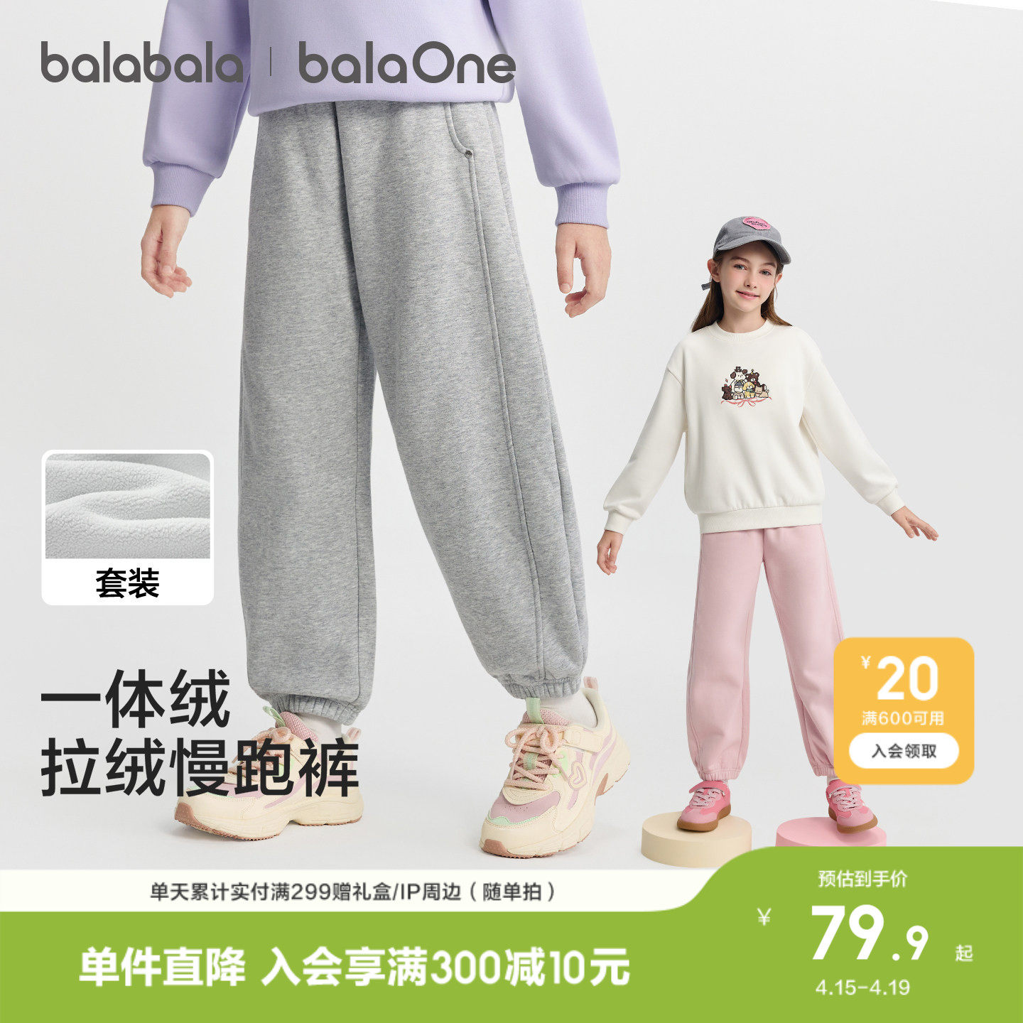 巴拉巴拉童装儿童加绒裤子女童2026秋冬装百搭运动休闲一体绒长裤