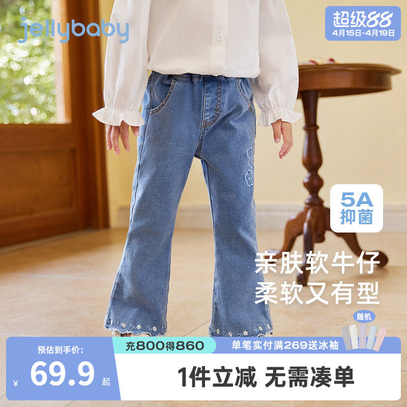 女童牛仔裤春秋微喇长裤小女孩春款儿童加绒喇叭裤子宝宝春装女宝