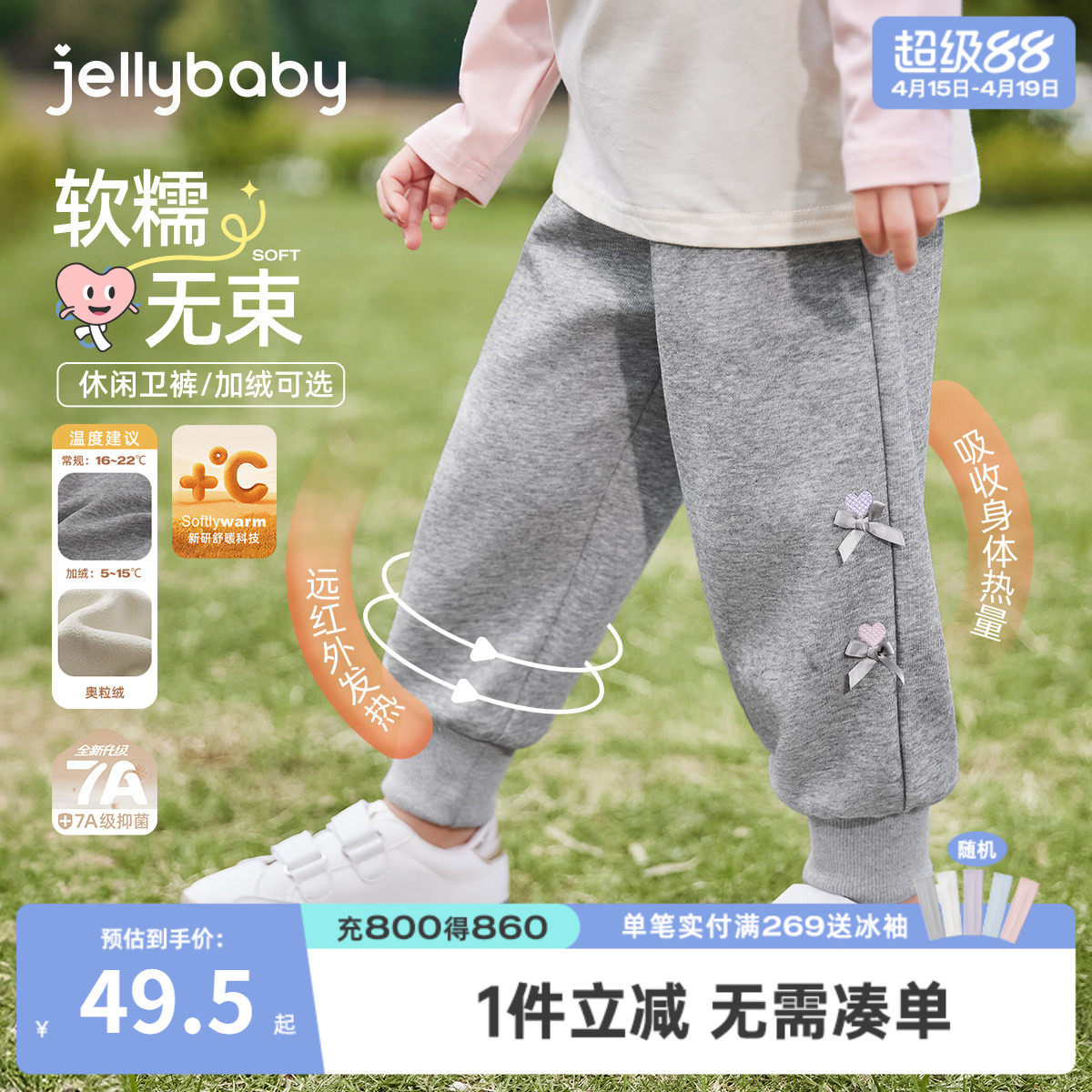 [7A抗菌]女童春秋裤子宝宝柔软卫裤小童加绒运动束脚裤儿童休闲裤