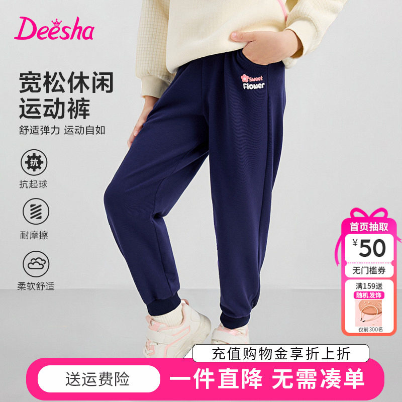 笛莎童装女童裤子春季新款大童卫裤运动裤休闲裤迪沙儿童加绒长裤