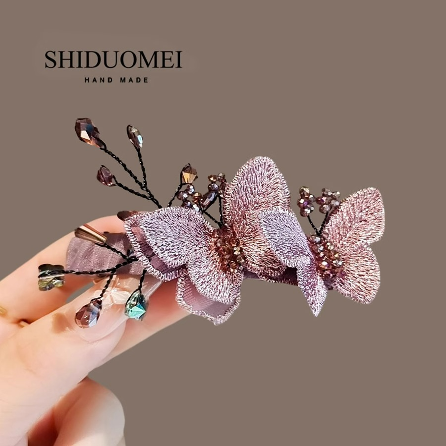 浪漫紫色仿水晶蝴蝶发夹高档横夹一字夹后脑勺弹簧夹顶夹发卡头饰