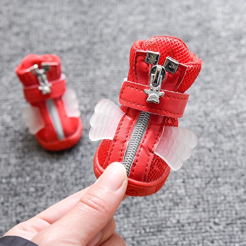 佳美乐狗狗鞋子泰迪小型犬四季款比熊网布鞋一套4只宠物博美脚套