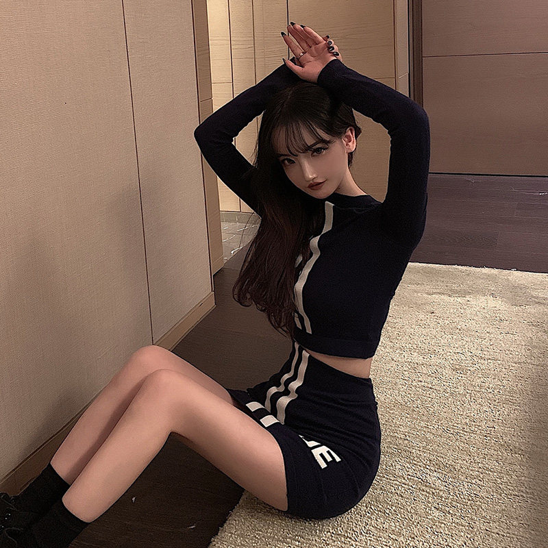 秋冬包臀短裙辣妹套装针织连衣裙纯欲裙子气质显身材毛衣两件套女