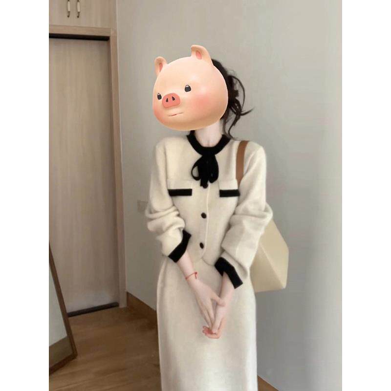 两件套针织毛衣连衣裙女2024秋冬新款内搭气质配大衣套装加厚裙子