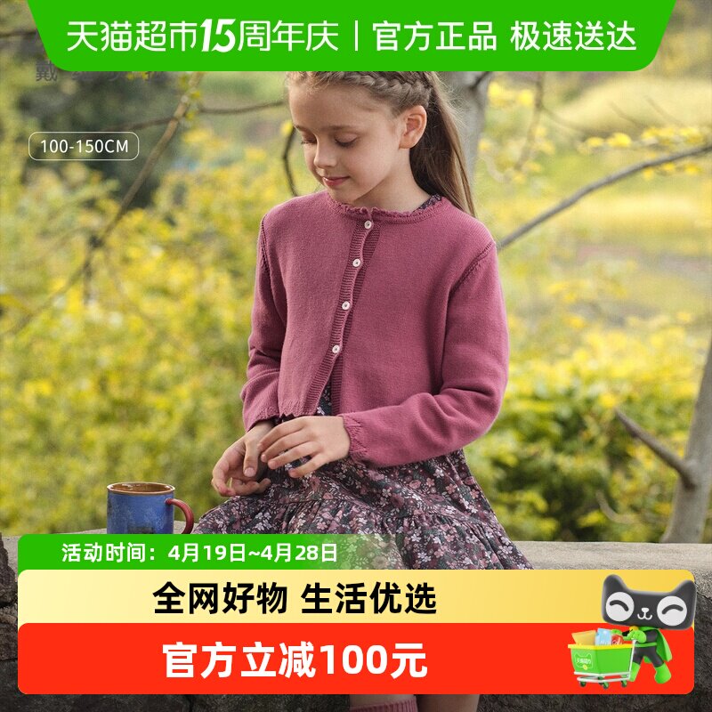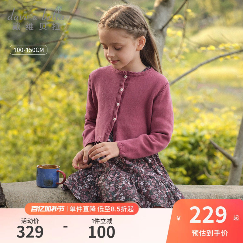 戴维贝拉中大童毛衣开衫裙子两件套2026春秋新款女童连衣裙套装