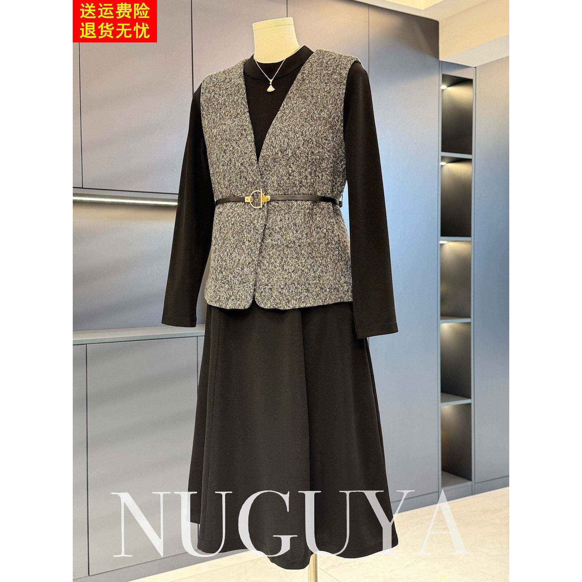 阔色法式收腰连衣裙内搭毛衣两件套装女25冬季灰色背心裙短裙子秋