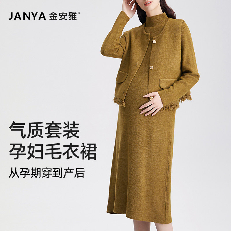 孕妇装秋冬季2024新款内搭马甲连衣裙两件套装针织毛衣裙子春秋款