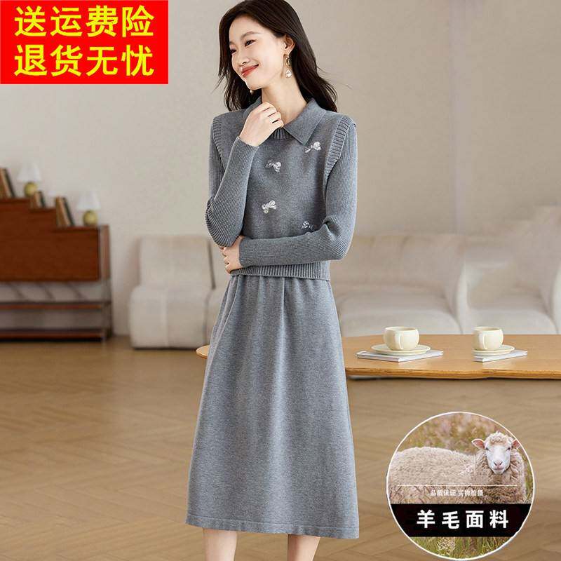 羊毛针织连衣裙套装2025新款秋冬配大衣卫衣毛衣裙打底裙子两件套