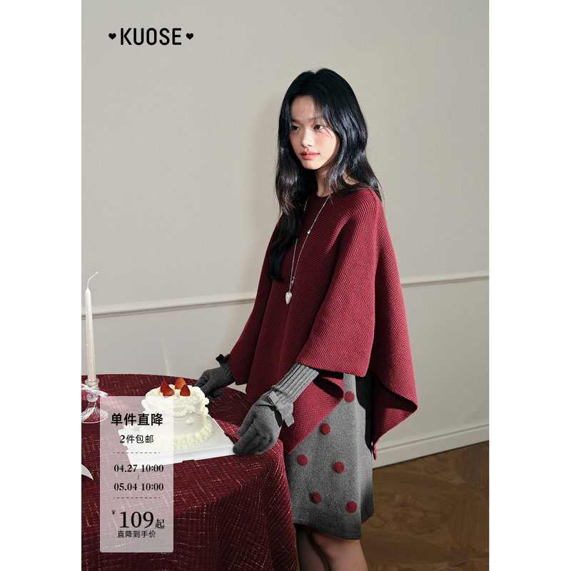 阔色斗篷毛衣背心裙连衣裙两件套装25秋冬季女外套披肩红色裙子春