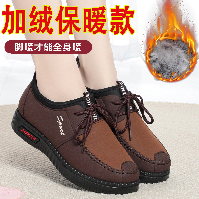 老北京布鞋冬季平跟妈妈棉鞋女防滑软底老太太加绒低帮奶奶保暖鞋