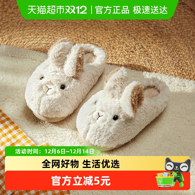 棉拖鞋女士2023秋冬女童毛毛鞋粉色兔子平跟包跟绒面居家室内棉鞋