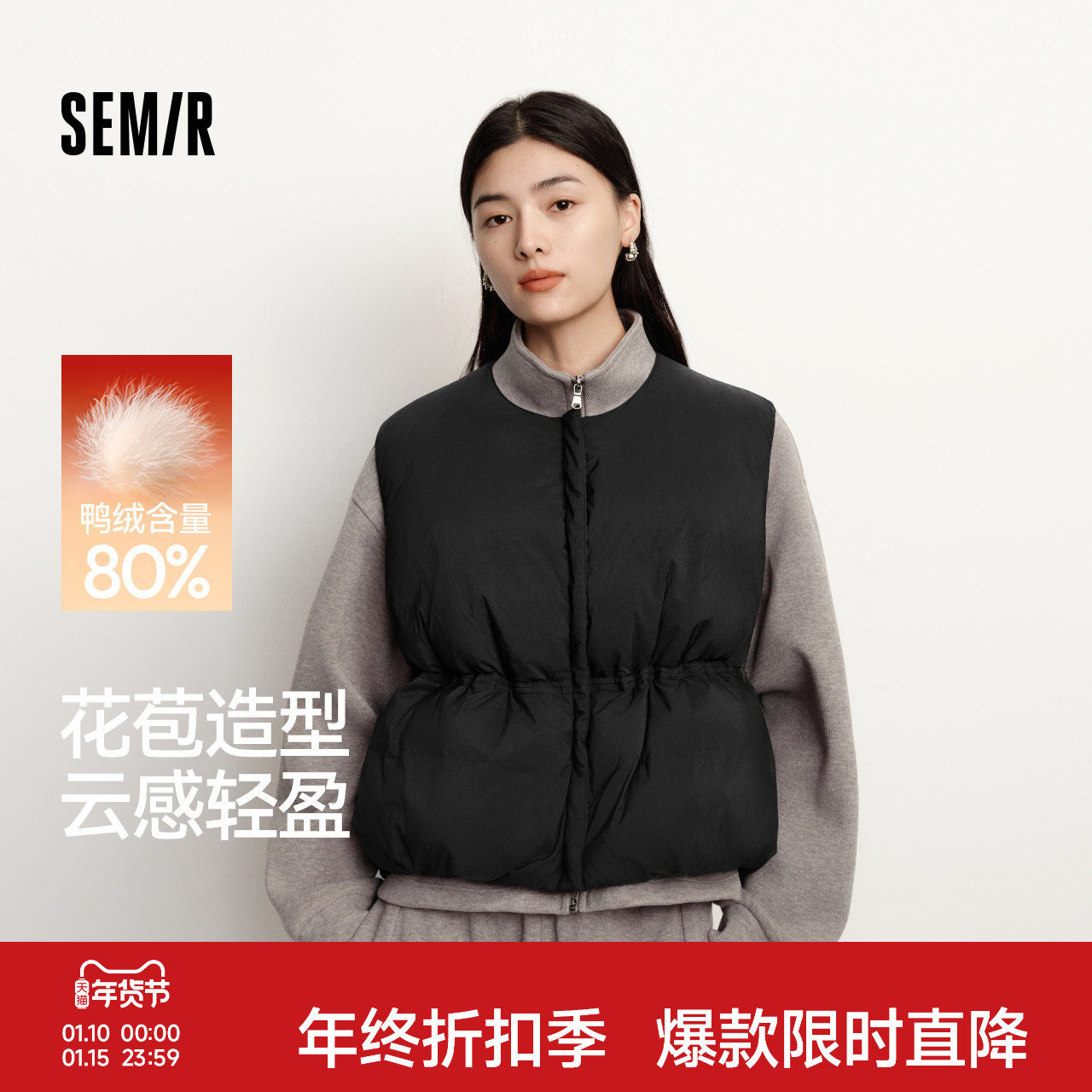 森马羽绒马甲女冬纯色收腰圆领叠穿2025新款oversize肌理花苞外套