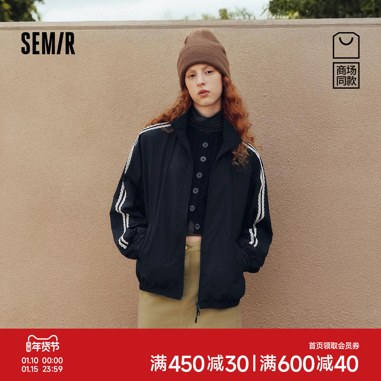 [商场同款]森马外套女蕾丝运动风2025秋新款oversize立领肌理夹克