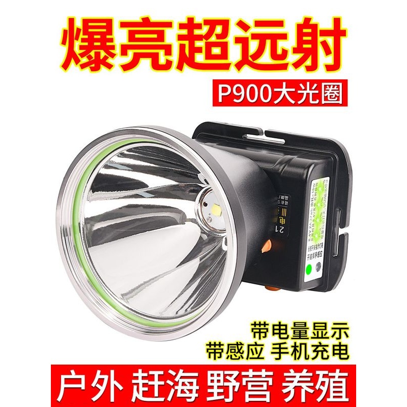 新款感应超亮头灯强光充电爆亮四核P900头戴手电筒远射夜钓鱼矿灯