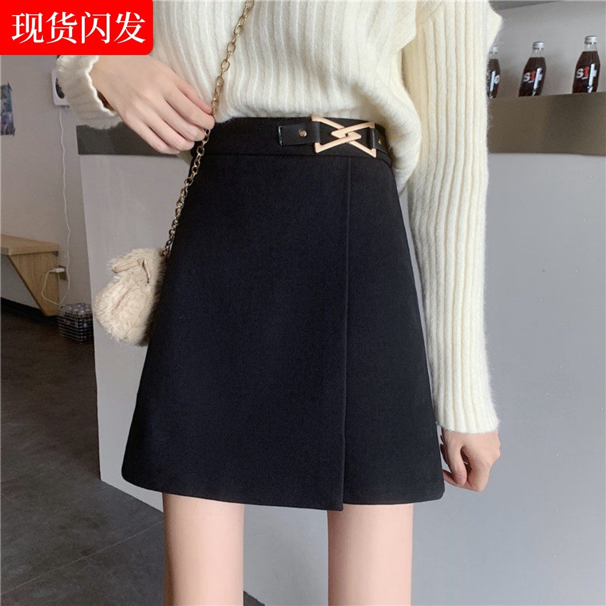 小黑裙a字短裙胖mm显瘦设计感一步裙大码秋冬日系学生毛呢半身裙