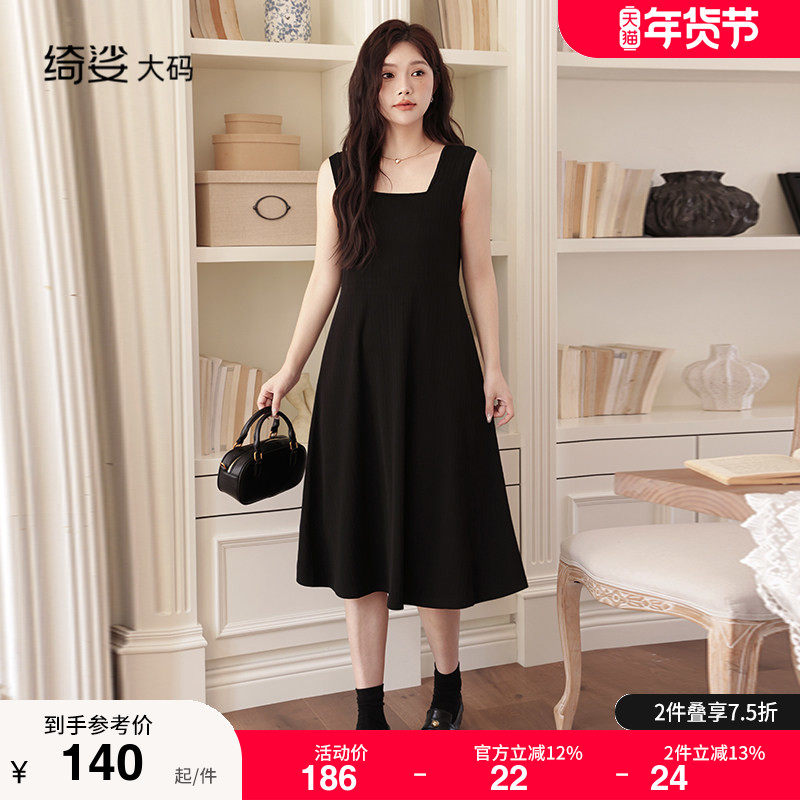秋冬新款显瘦大码胖MM连衣裙吊带背心款百搭显瘦遮肚子收腰小黑裙