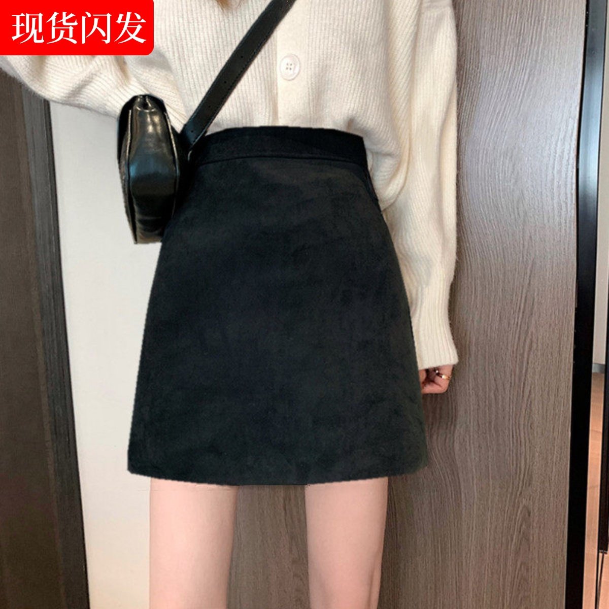 鹿皮绒小黑裙大码设计感包臂半身裙女秋冬小众高腰不显跨a字短裙