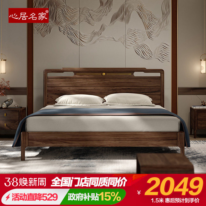 心居名家实木床新中式卧室家具乌金木轻奢双人1.5/1.8米【特价】
