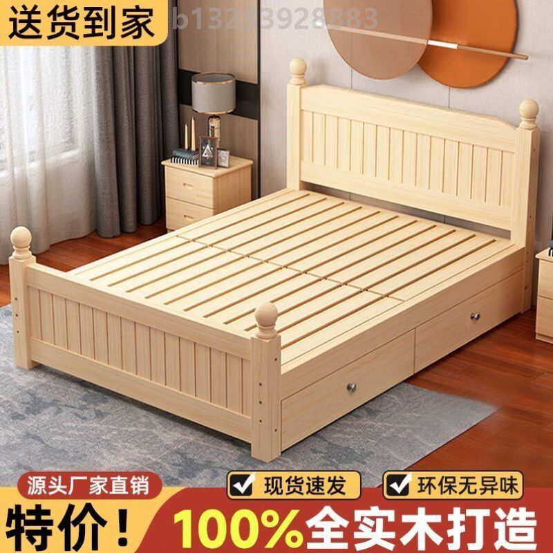 实木床全实木家用卧室1.8米双人床工厂直销1.5米床出租屋用特价床
