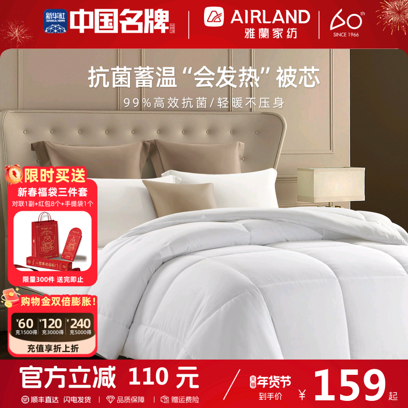 雅兰家纺被子冬被秋冬被芯加厚保暖棉被宿舍单人抗菌被褥四季通用