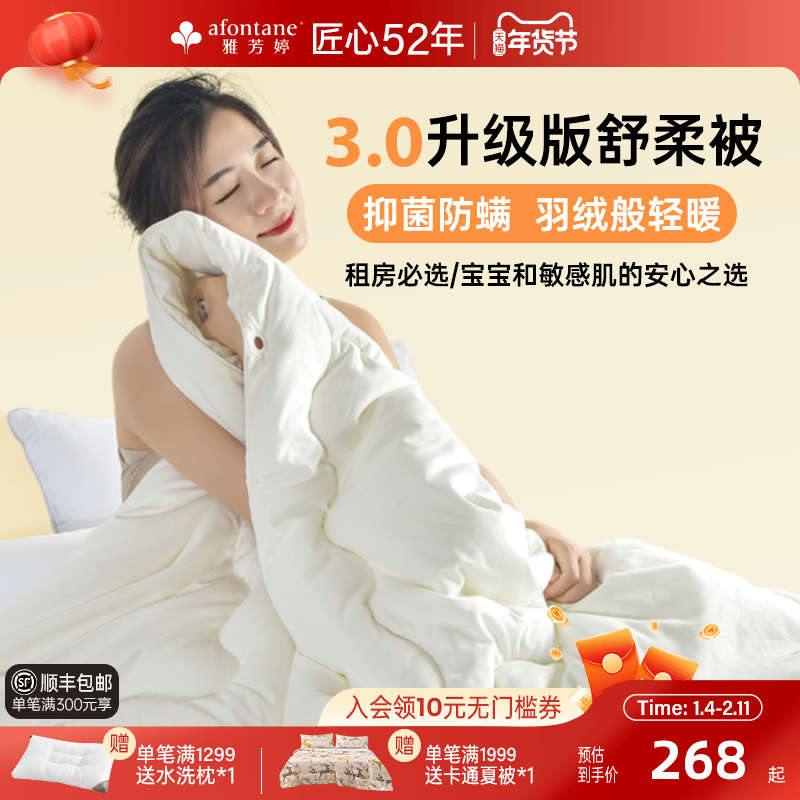 雅芳婷秋冬羽绒棉纤维被子宿舍单人学生冬季保暖被芯冬被床上用品