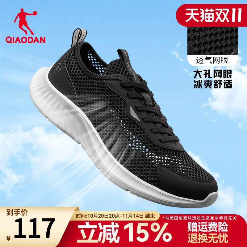 乔丹男鞋运动鞋男2025夏季网面透气镂空网鞋轻便一脚蹬黑色跑步鞋
