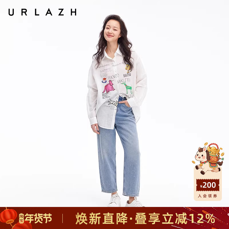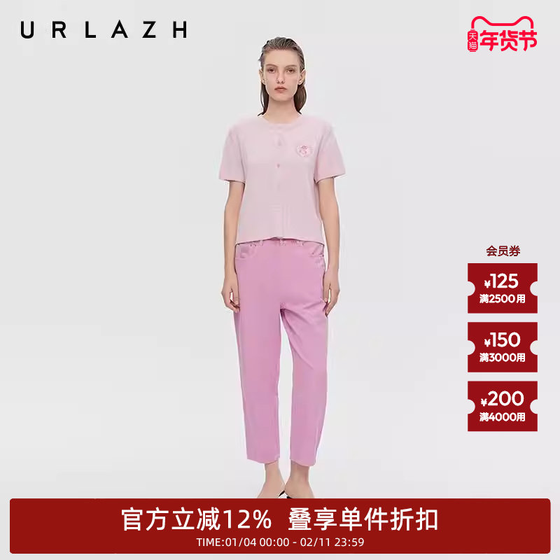 商场同款URLAZH有兰2025秋季新款糖果粉复古锥形宽松九分牛仔裤女