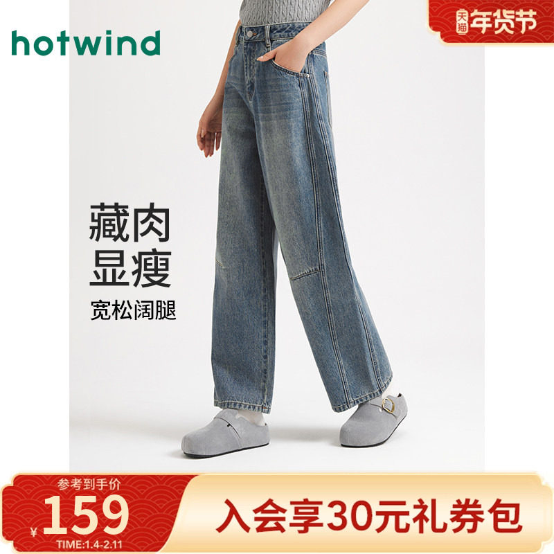 热风女士牛仔裤2025年秋季新款九分裤复古宽松显瘦阔腿牛仔裤女