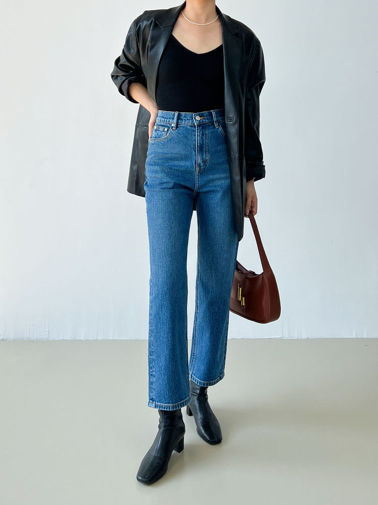 进口面料~法式直筒牛仔裤女秋季新品高腰显瘦弹力宽松直筒裤九分
