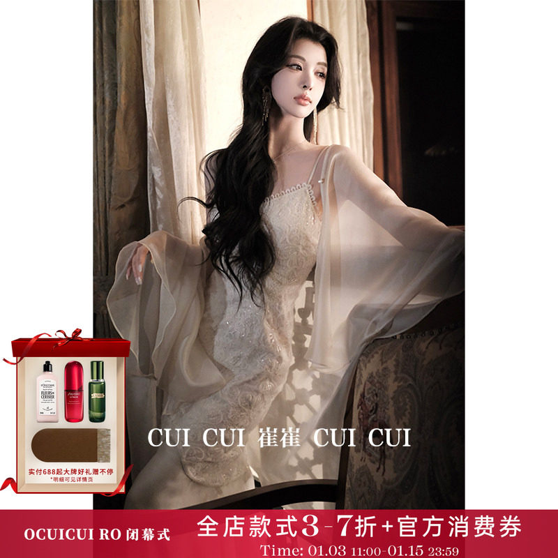 CUICUI崔崔【浮光掠影】清冷感气质罩衫鱼尾吊带连衣裙女两件套装