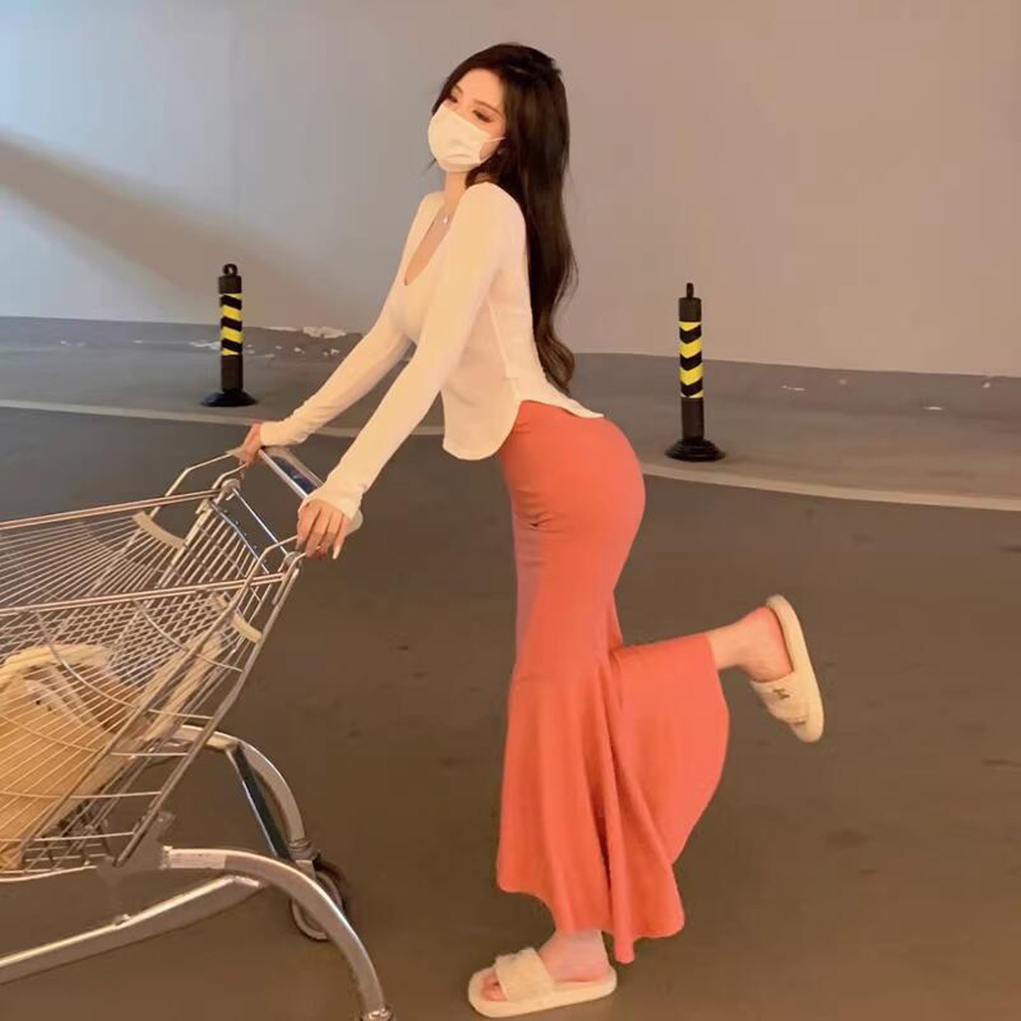 潮流独特漂亮纯欲套装显身材包臀鱼尾长裙性感连衣裙辣妹穿搭女夏
