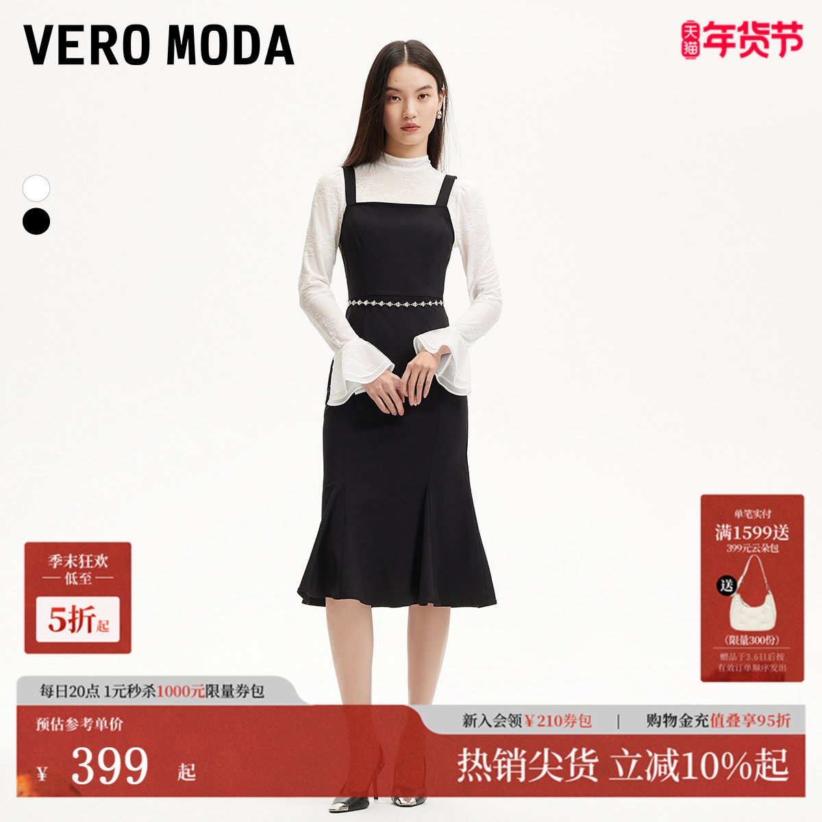 Vero Moda连衣裙2025夏新款淑女风套装鱼尾裙半透内搭325161009
