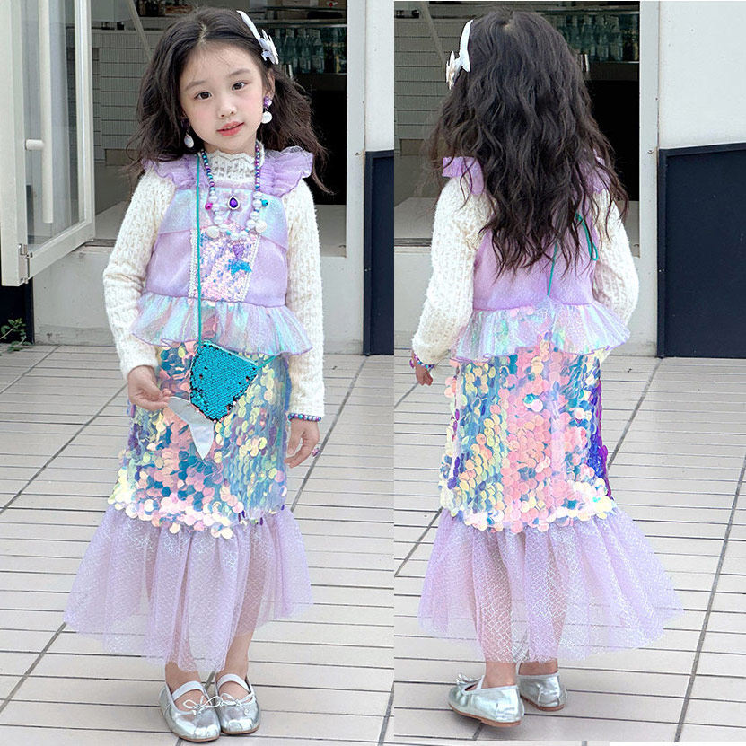 美人鱼亮片裙子 女孩2024新秋冬cos儿童鱼尾公主裙女童连衣裙套装