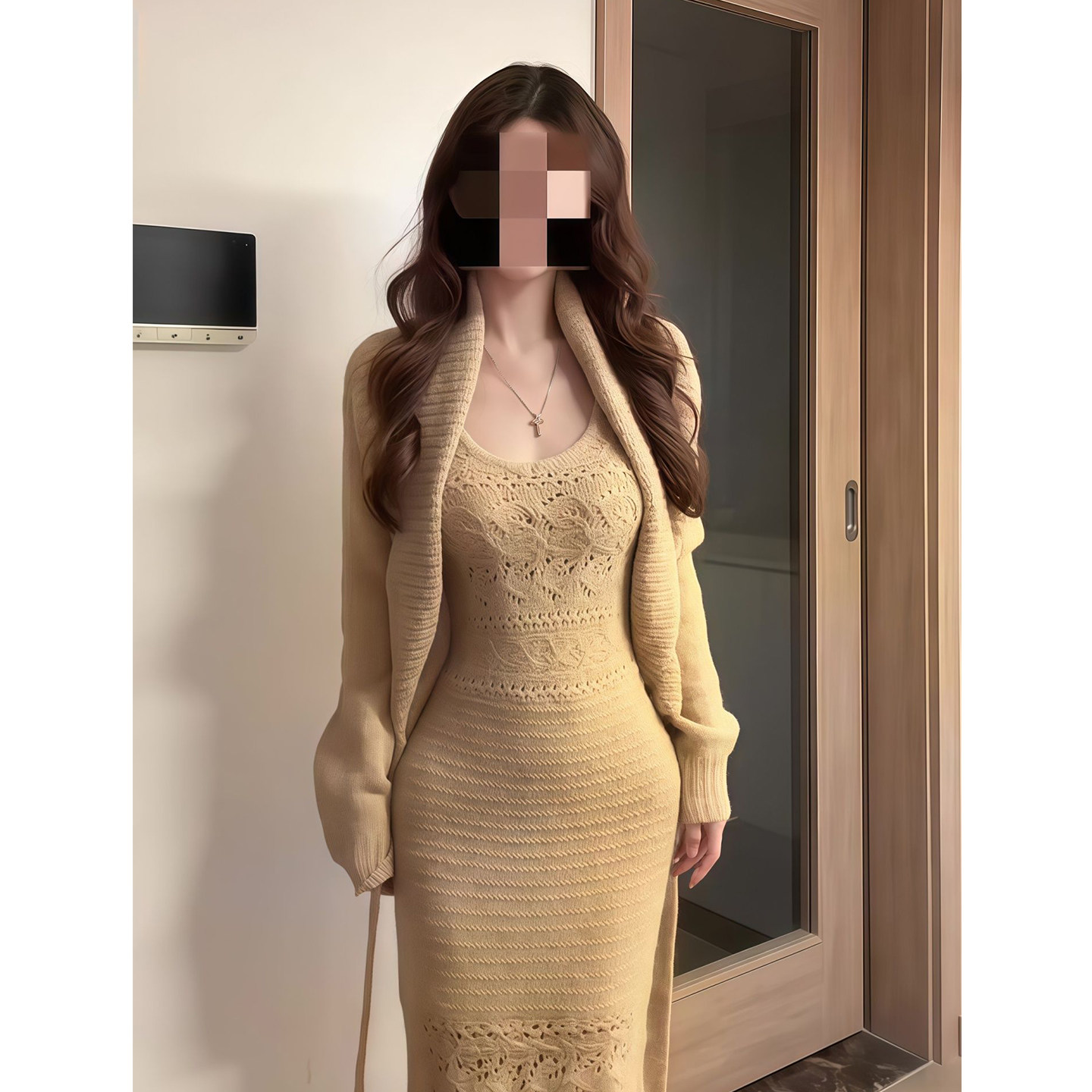 纯欲风吊带连衣裙女米色开衫套装包臀裙辣妹显瘦显身材后妈鱼尾裙