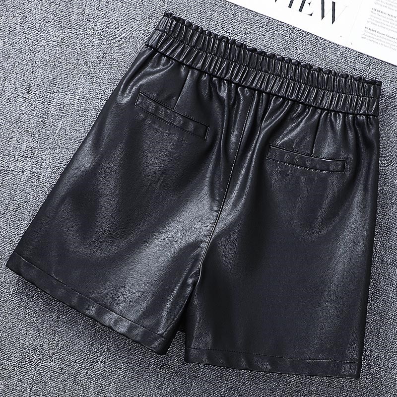 2025春季皮短裤女高腰显瘦外穿宽松阔腿a字百搭皮u松紧腰女士皮裤