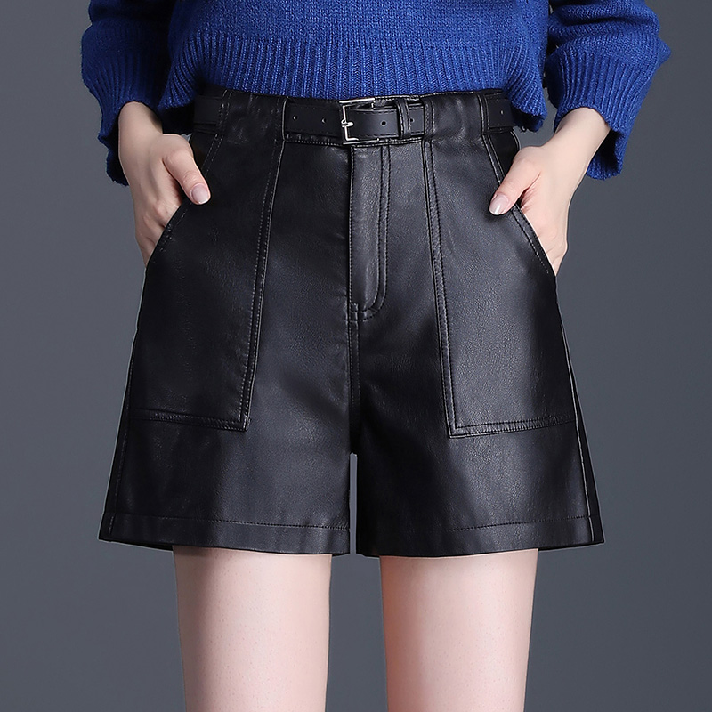 皮短裤女2024年新款秋冬季高腰时尚春秋外穿冬款皮裤女士a字靴裤