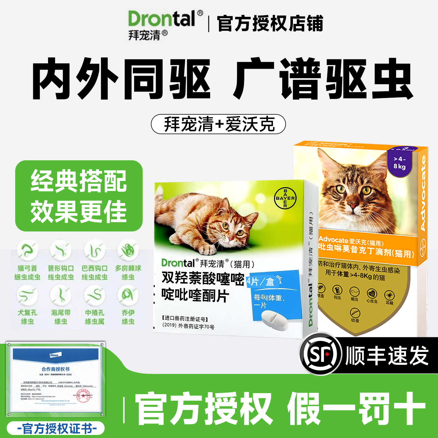 拜宠清驱虫药体内驱虫猫爱沃克猫咪福来恩滴剂宠物猫体内体外驱虫