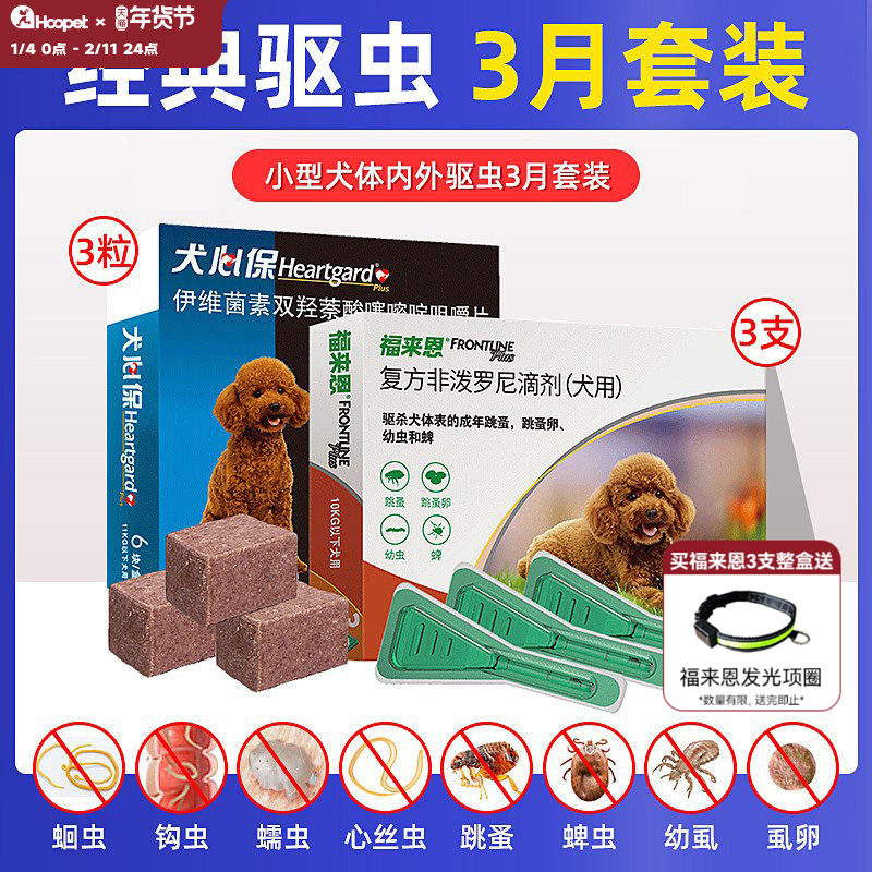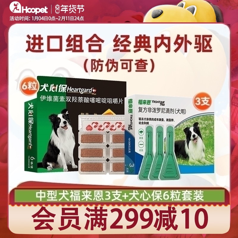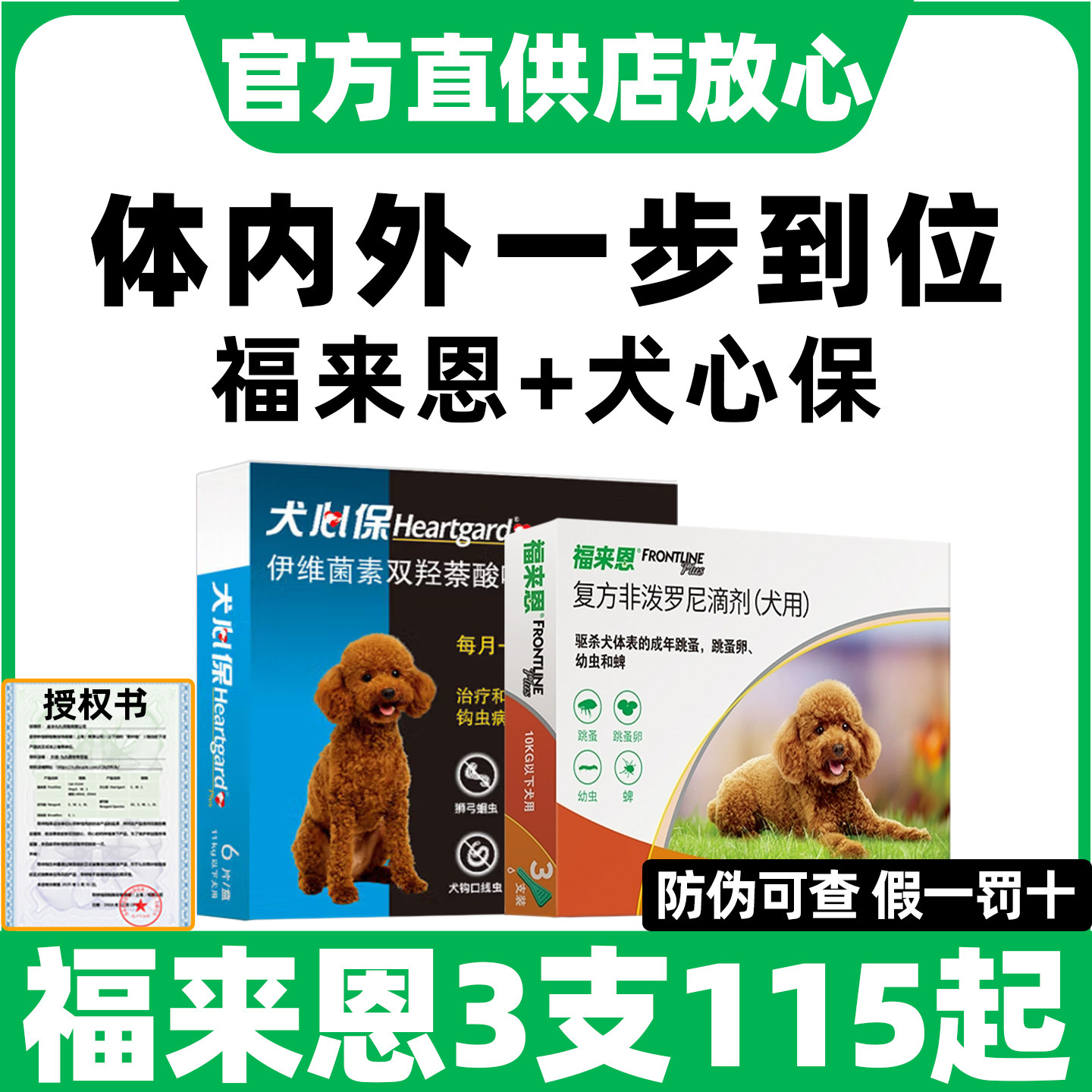 福来恩滴剂狗狗内外一体犬心保套餐驱虫药犬用福莱恩跳蚤蜱虫同驱