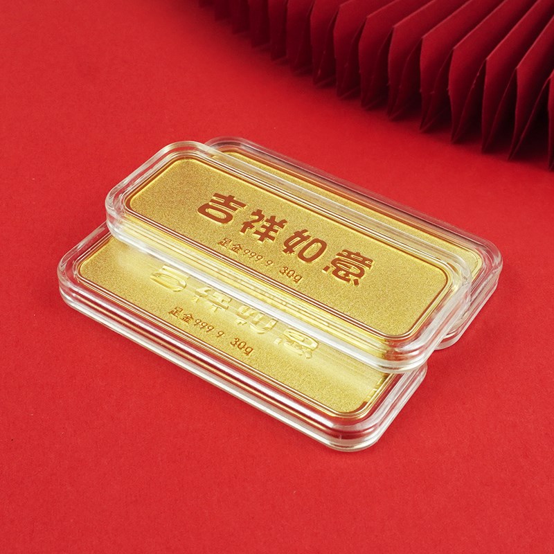 新款吉祥如意摆件道具30g铜镀金仿真金砖假金条银行金店投资金条