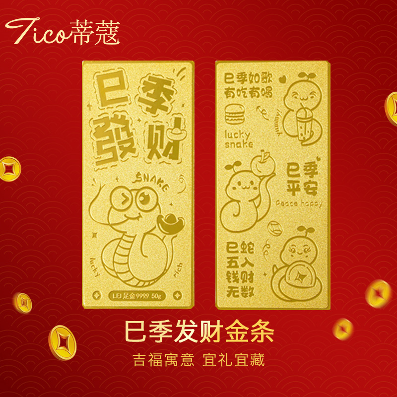 蒂蔻珠宝黄金足金999.9蛇年巳季发财投资金条收藏送礼本命年礼物