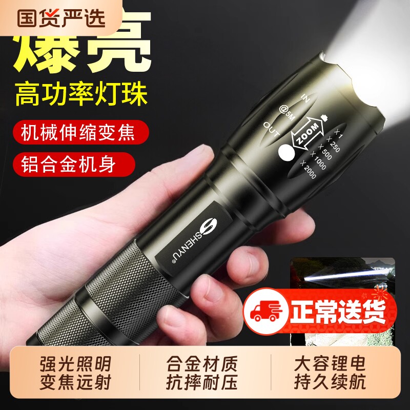 - 手电筒 强光 远射 led
