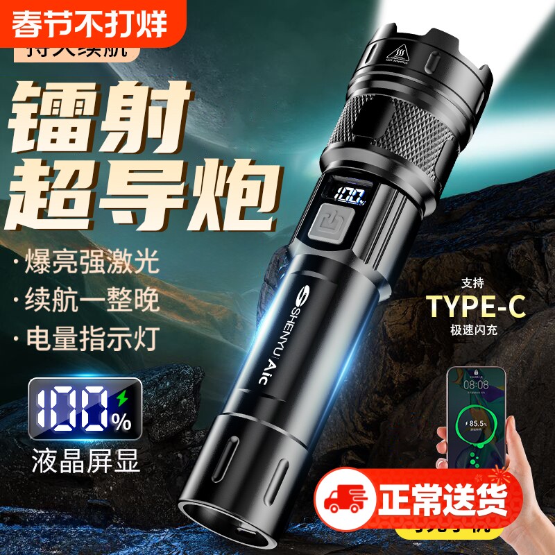 超强光手电筒充电式超亮户外远射激光穿天炮大功率氙气灯超长续航