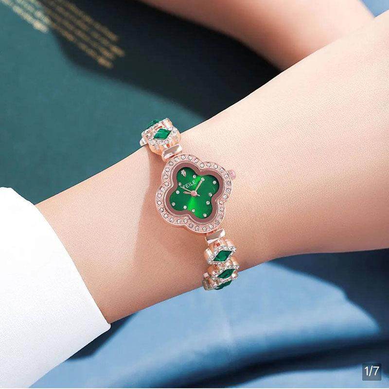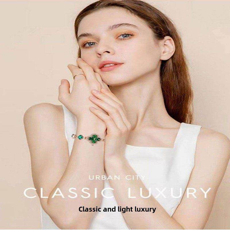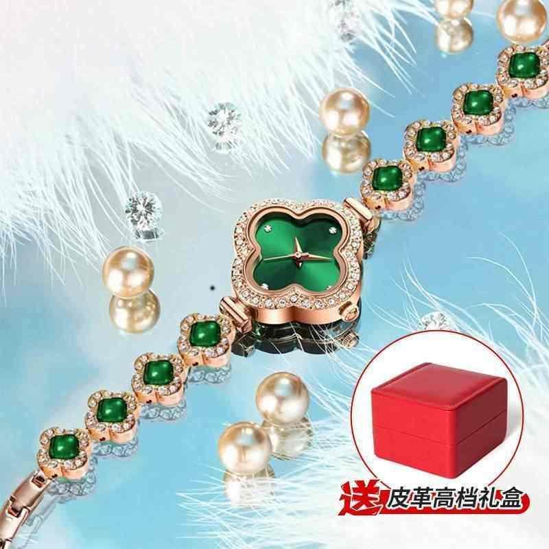 金牌好物屋幸运四叶草手表防水高端翡翠工艺女表女士精致手炼腕表