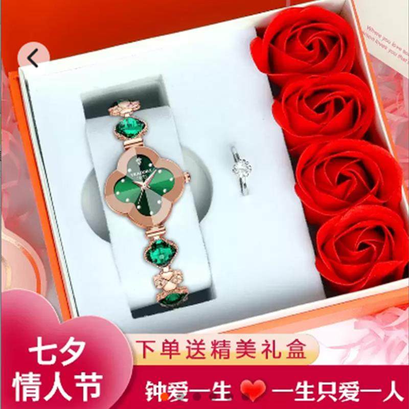 爆款幸运四叶草镶钻女士时尚简约手表心形石英表手链镶钻轻奢女表