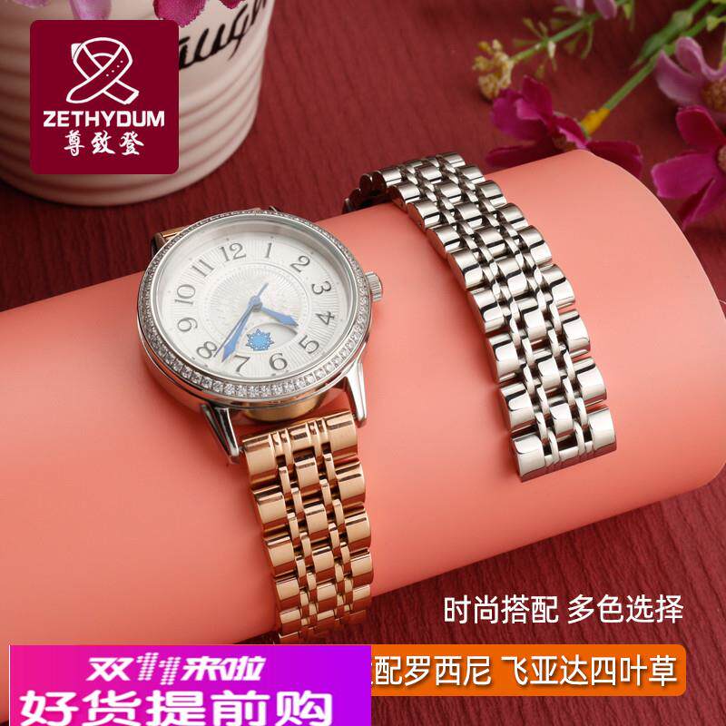适配天王飞亚达四叶草手表s带男女实心精钢表链花语罗西尼表链16m