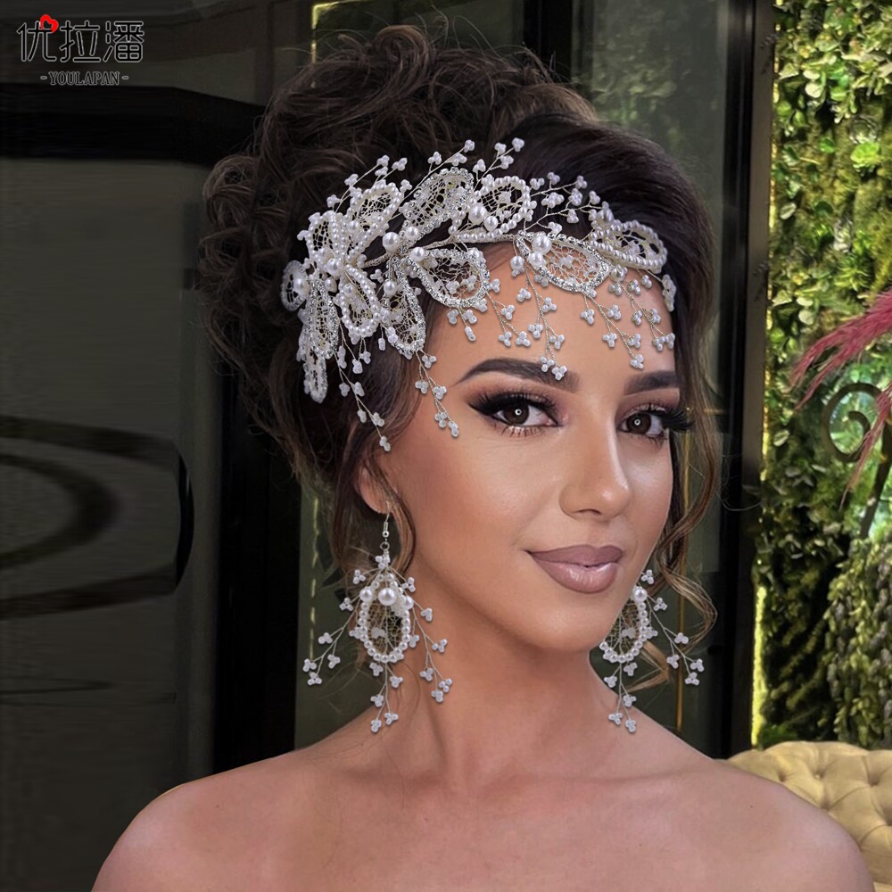 优拉潘 新娘头饰超仙美手工珍珠侧边发饰套装结婚跟妆饰品女HP486